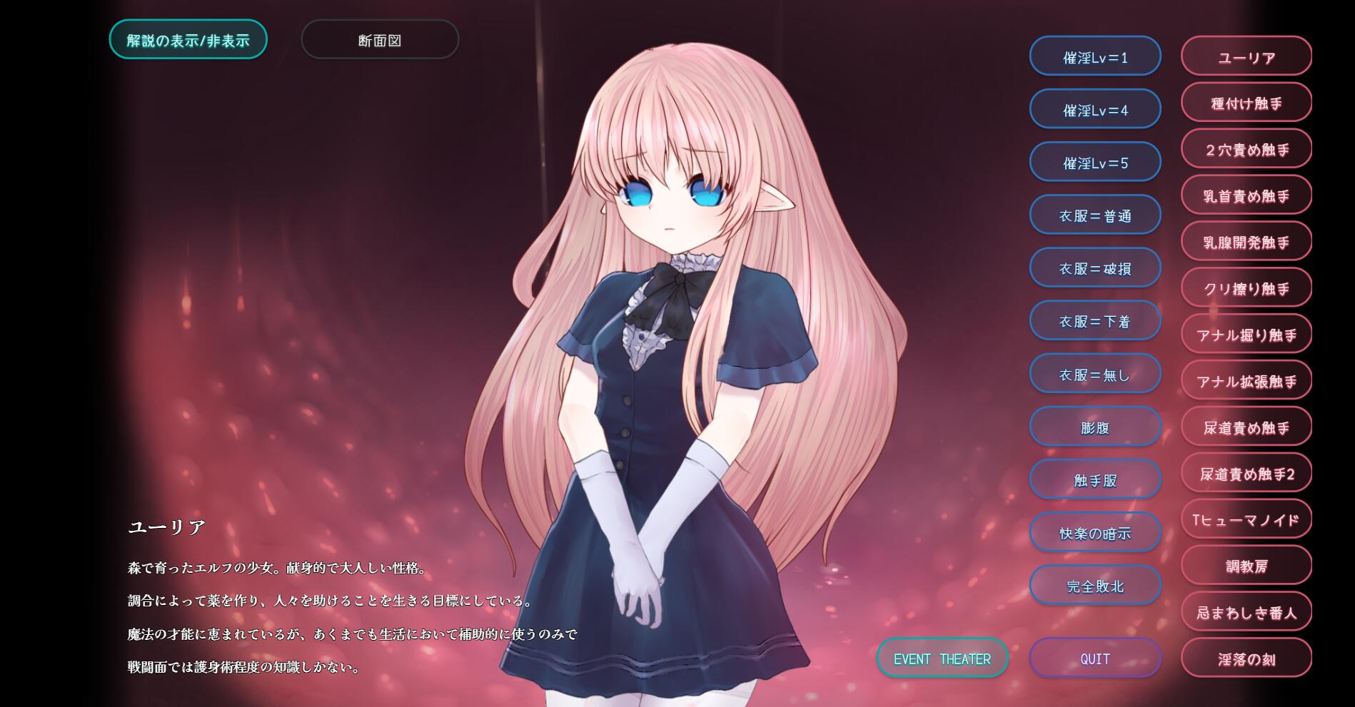 在开始游戏之前,您可以选择关闭以futanari场景、横截面镜头和女主角胸部变小的场景为特色的场景。