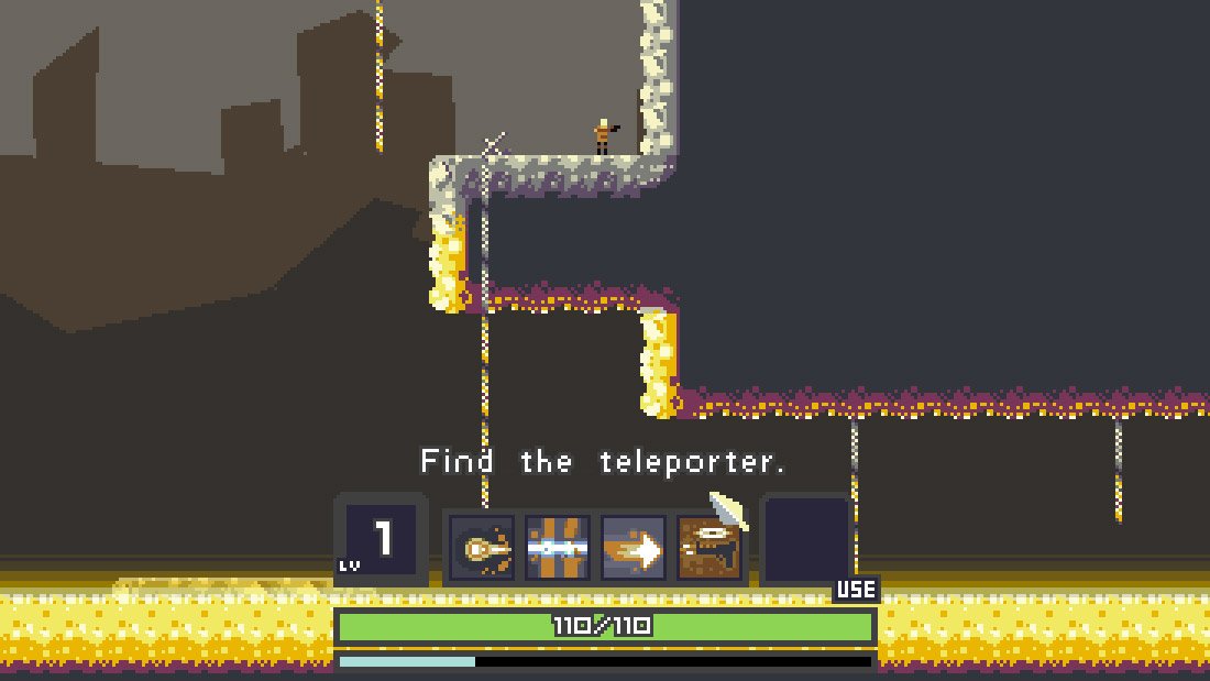 雨中冒险risk of rain一款Roguelike的横版动作游戏,初始只有2个职业——指挥官(Commando)和矿工(Miner)。音乐暂无,画风为点阵像素风格,但不影响其游戏性。