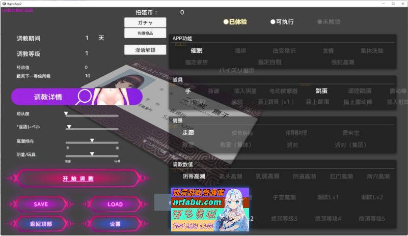・调教结束后会清除调教期间的记忆,调教环节终止。即使记忆被消除,随着身体逐渐被开发,对方的态度也会逐渐改变。