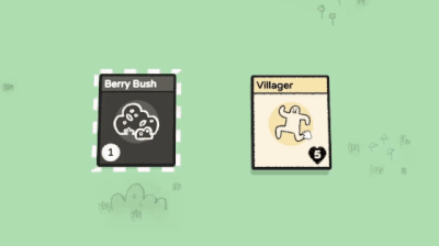 例如,将“村民”卡牌拖至“浆果灌木”顶部将会生成“浆果”卡牌,村民们可以吃这些浆果卡牌来生存!