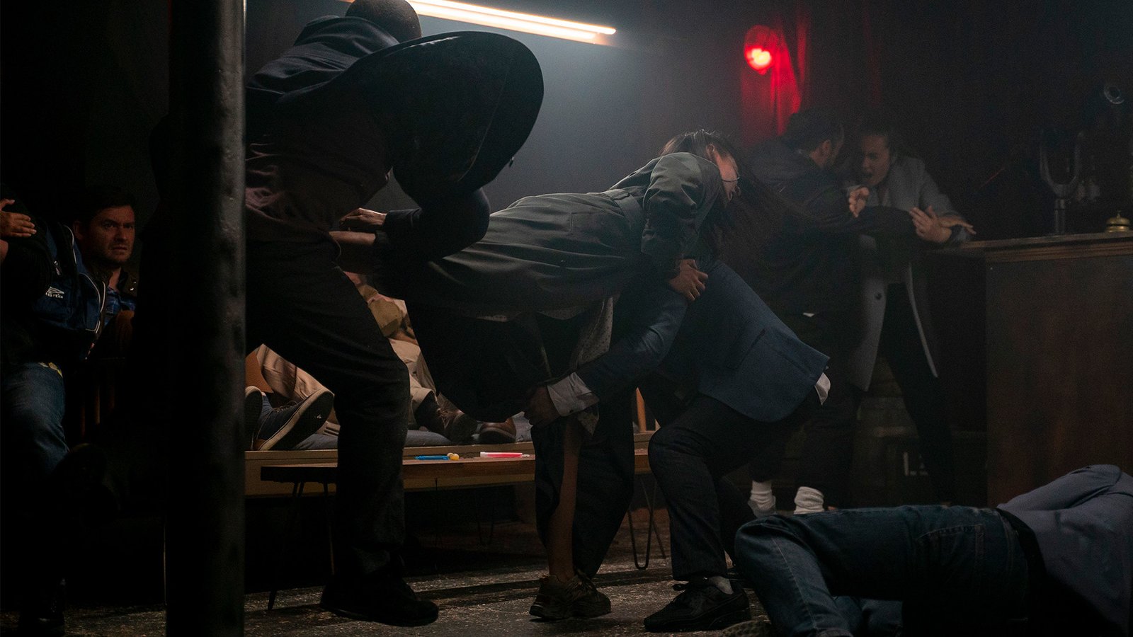 这部真人互动动作片讲述了勇敢的酒吧侍女米娅的故事:一个神秘的女人为了躲避一群暴徒的追赶,闯进了她工作的地方,而且这个女人不会说英语,这让米娅的生活陷入了一片混乱。