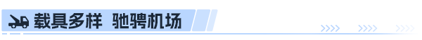 CBus 3000摆渡车;Goldhofer Bison D1000飞机牵引车;TG MT、TG 660;油罐车;餐车;TLD ABS-580客梯车;TLD Jet 16牵引车;TLD JCT-60牵引车;TLD NBL行李传送车;TLD TMX-150牵引车;Hitzinger D Power地面电源机组;TLD GPU-418地面电源机组